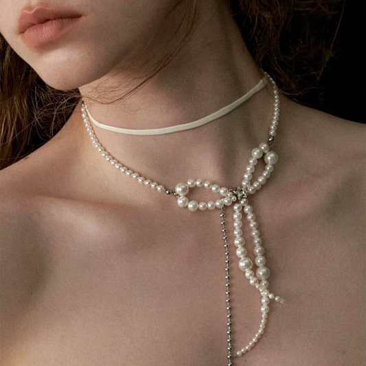 Elegant Double-Layer Bowknot Pearl Ballet Sweet Versatile Cute Necklace
