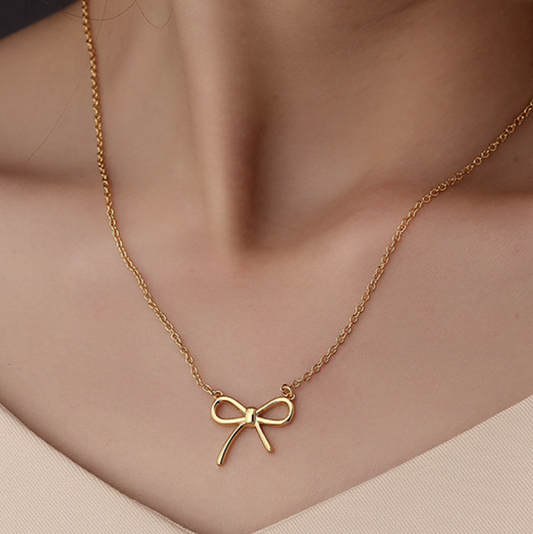 Coquette Yellow Gold Cute Ribbon Bow Necklace