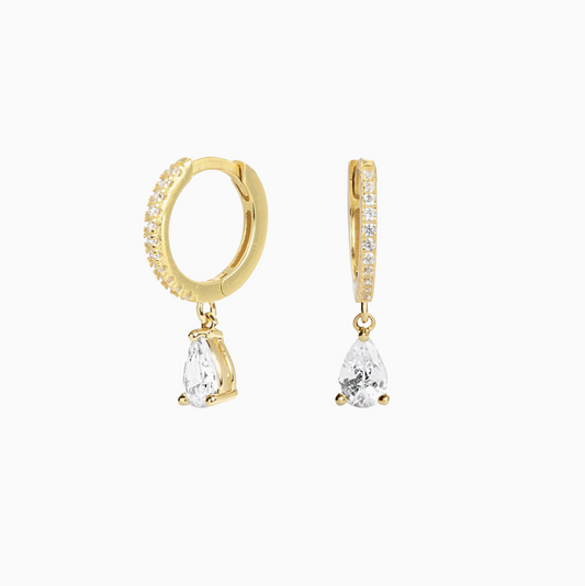 18k Gold-plated White Zirconia Delicate Teardrop Huggies