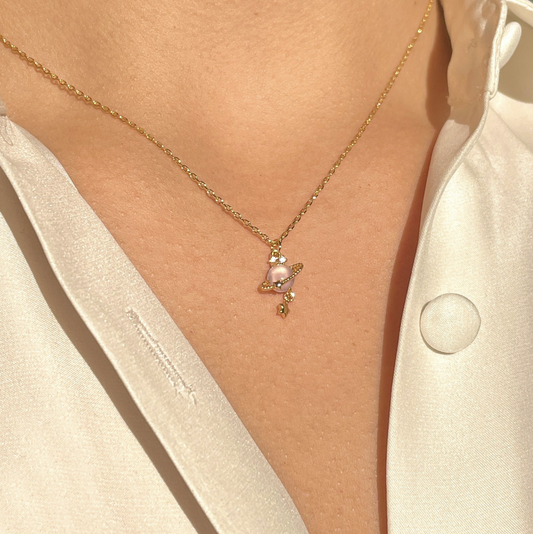 Coquette Gold Pink Planet Pendant Necklace