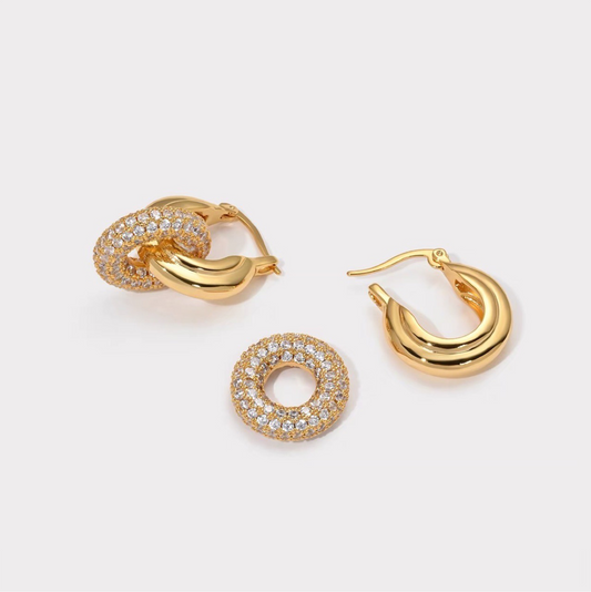 Retro Chunky Yellow Gold Mixed Convertible Link Earrings