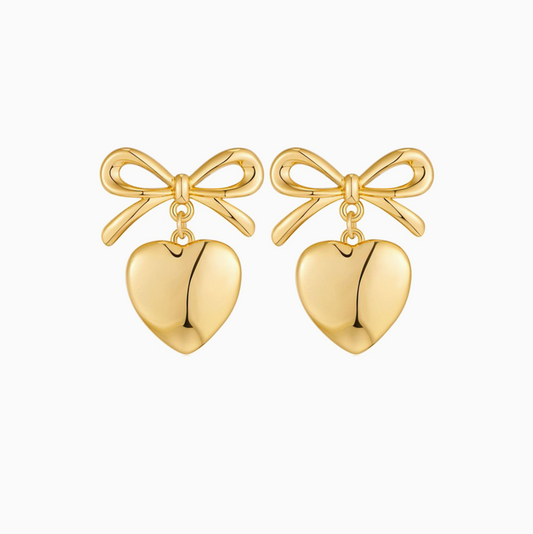 Silver Heart Bow Cute Girl Earrings