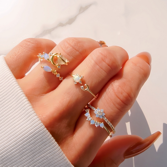 Twinkle Opal Star Halo Stack Ring
