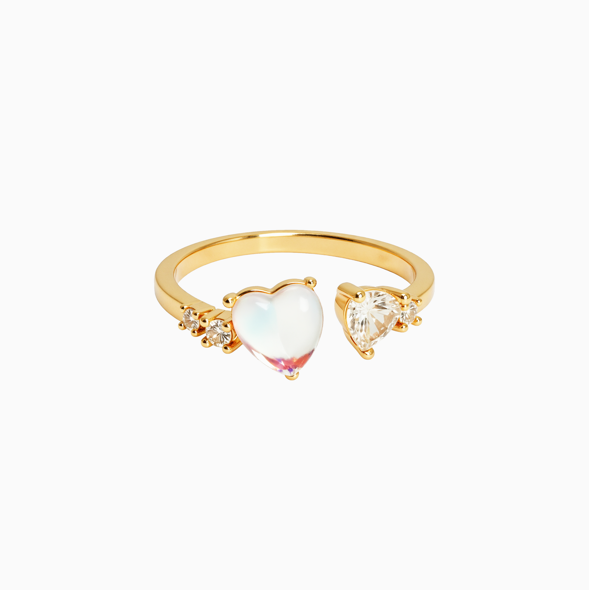 - gold-plated petite band with opalescent heart cabochon and crystal heart stone