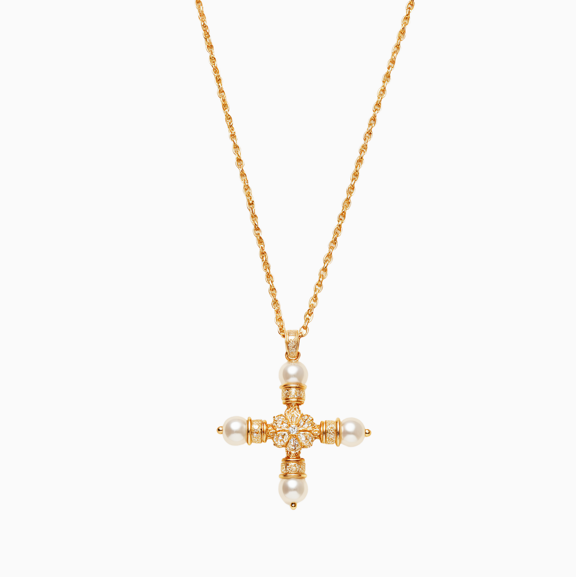 • A timeless cross pendant adorned with shimmering baroque pearls, giving you a touch of vintage charm with a modern coquette twist.