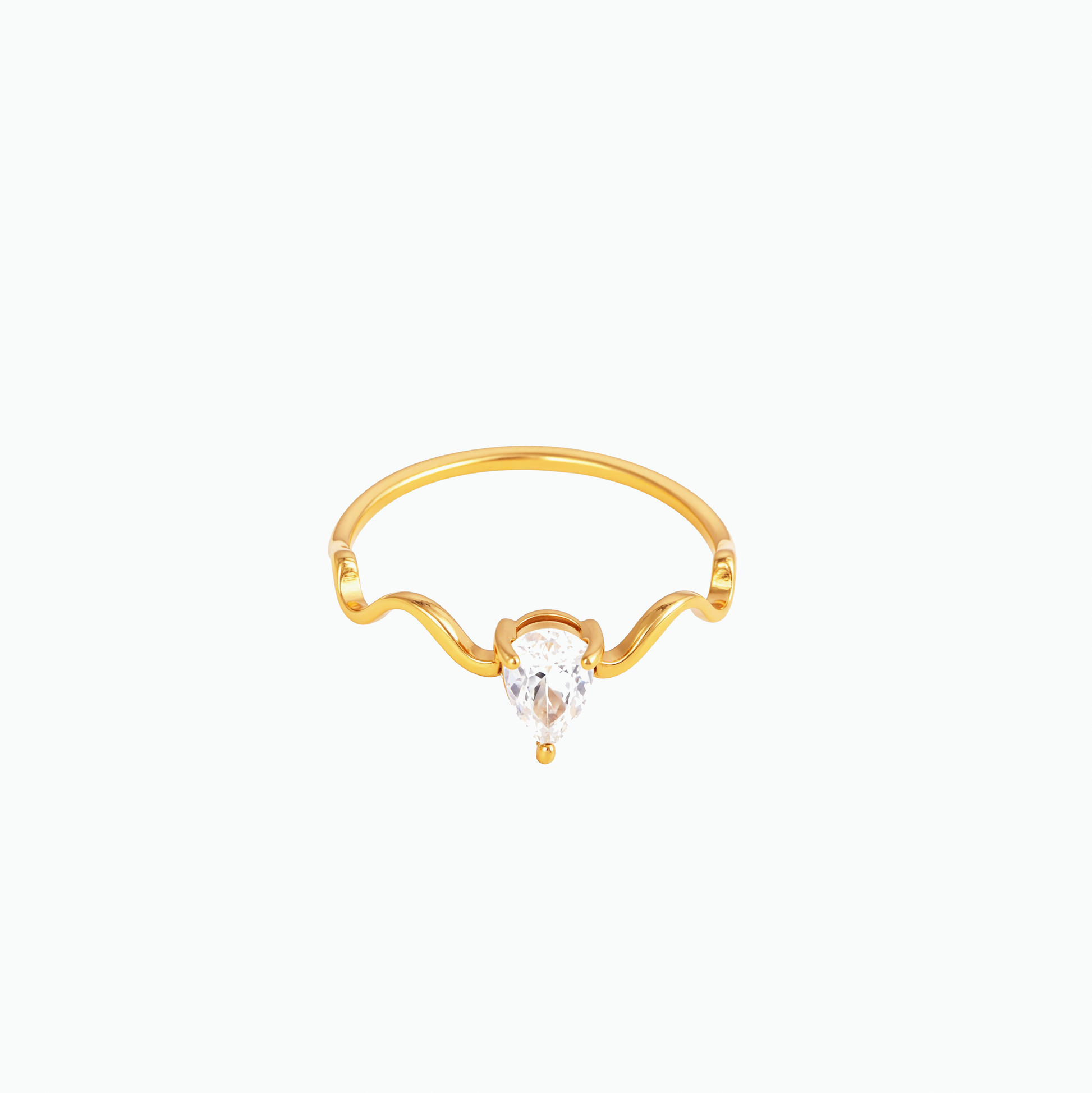 Minimalist yet radiant — this dainty gold ring features a graceful wave band crowned with a pear-cut crystal that sparkles with every movement.