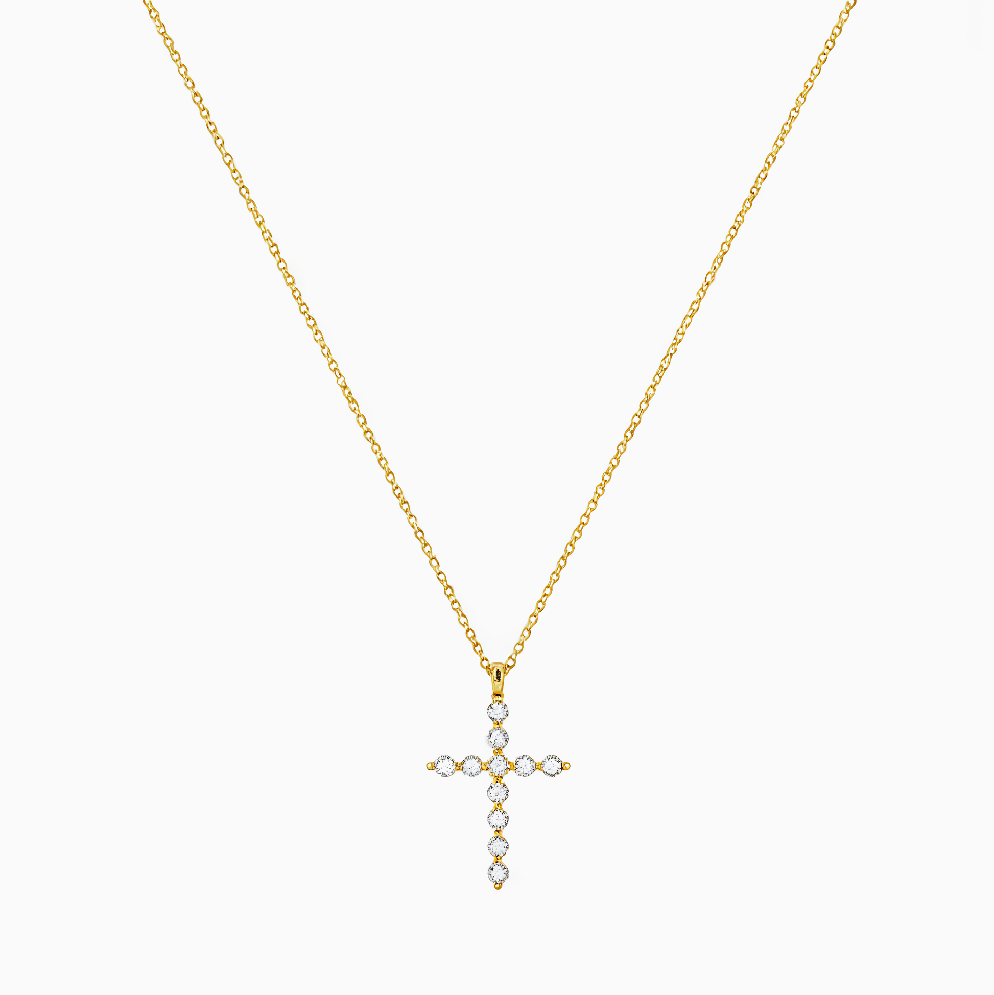 Yellow Gold Diamond Cross Pendant 18k Necklace